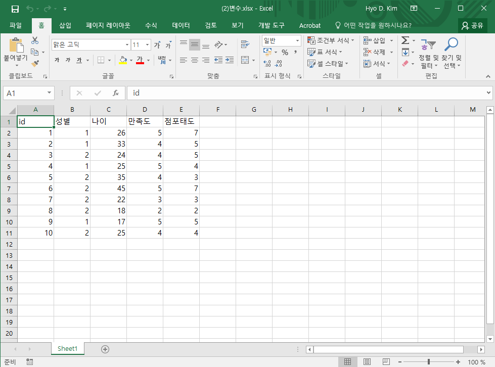 - 그러나, 5점척도 이상은 숫자변인으로 취급