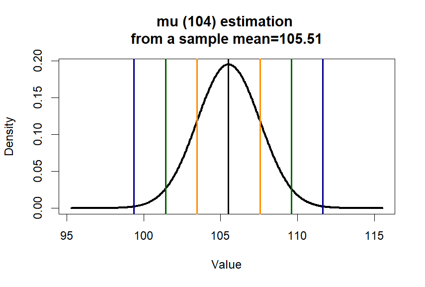 + main = paste0("mu (", m.p2, ") estimation \n", "from a sample ", "mean=", round(m.treated.s,2)),