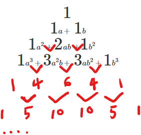 | coefficient 는 1, 4, 6, 4, 1 순 | $a^4$ | $4a^3b$ | $6a^2b^2$ | $4a^1b^3$ | $b^4$ |